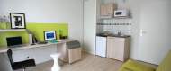 La résidence qui est très moderne offre dans chaque studio un coin cuisine, un coin nuit, un coin bureau ainsi qu'une salle de bain privative.